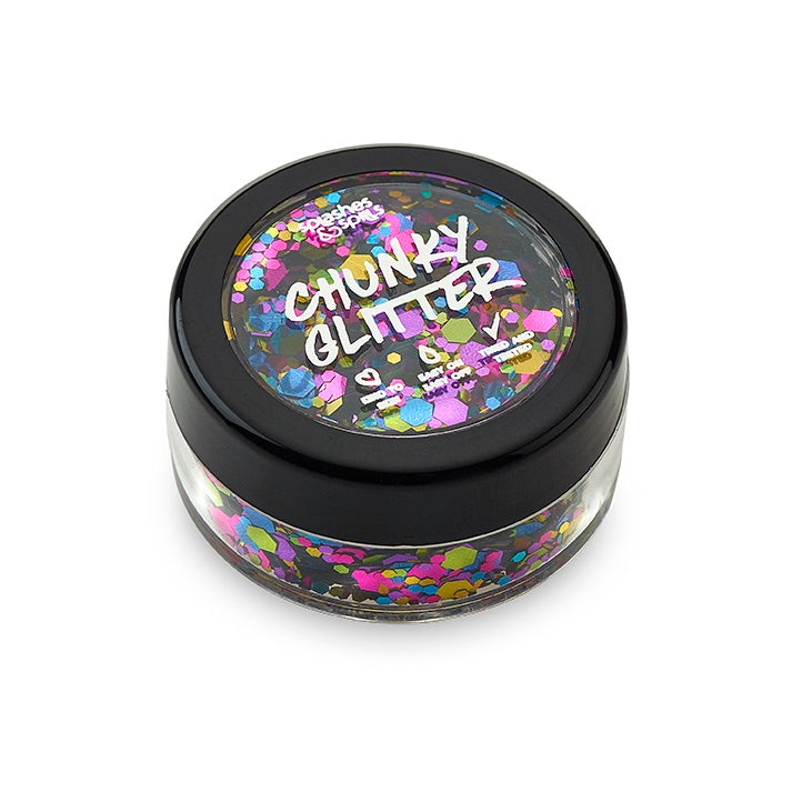 Pro Chunky glitter is the best vibrant accompaniment for every event. You will love using our range of chunky glitters for a range of creative occasions. We know that you will adore the selection of colors at your disposal and the ease in which you can apply the glitter to yourself, your friends and family. Our diverse range of vibrant colored chunky glitter allows you to let your creativity run wild and create eye-catching displays of shimmering artistry.